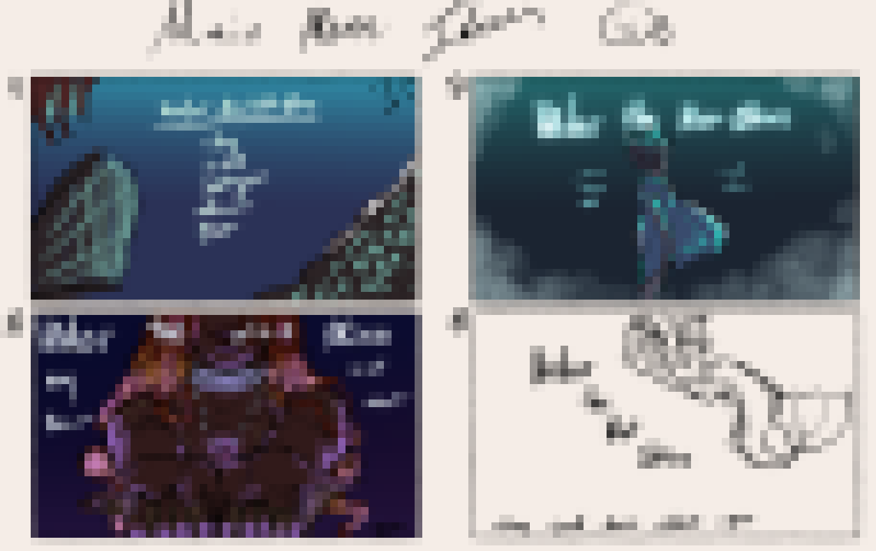 Anyways, I’ll try to update when the next month comes orrrr I get some big news. Here’s a quick glance of ideas I had (they are pixelated since I’m going to put in the art book lol)
